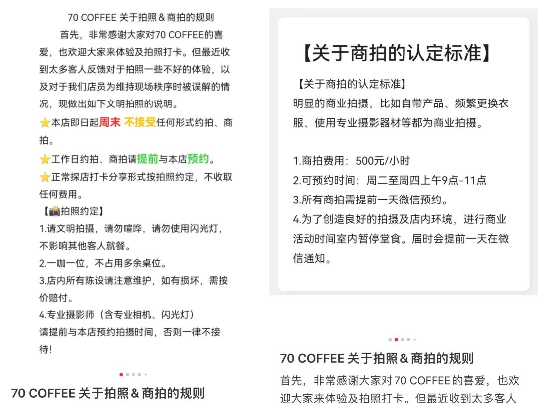 多数店主对于顾客适度打卡拍照的需求表示理解,除了建议顾客错峰到店, 有一些门店会为商拍明码标价。