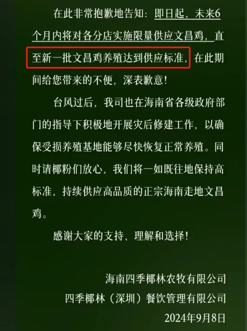 多家椰子鸡公司也发出“停鸡预警”,昨天还上了热搜,引发网友直呼还我妈生文昌鸡。