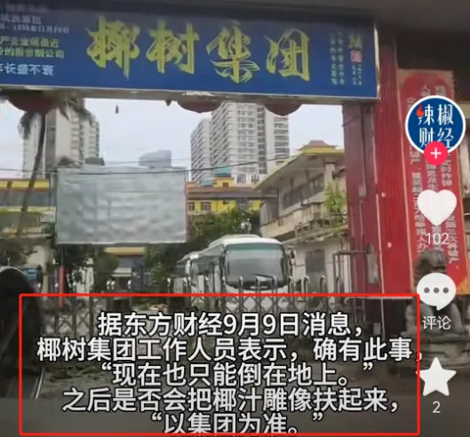 这两天不少网友在网上曝光,椰树门口的大椰汁罐雕像被台风吹倒了。