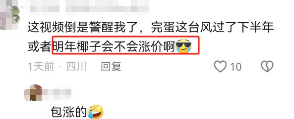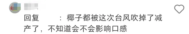 毕竟文昌鸡都供应紧张了,台风之后椰树到处乱飞,网友担心椰子供应不足,导致椰汁缺货也是情理之中。