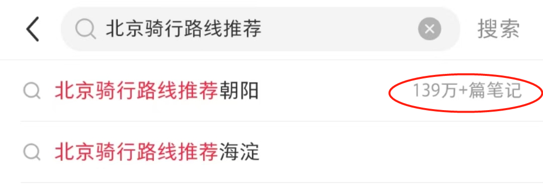 这股骑行风还吹到了小红书,类似的讨论“不绝于耳”。在小红书,搜索“北京长安街”,能得到 5 万多篇关于骑行攻略的笔记;如果搜索“北京骑行路线推荐”,更是能得到 139 万+篇笔记,热度简直夸张。