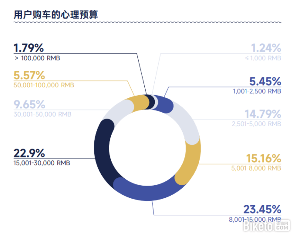 上述报告也通过调查显示,在近一年更换配件的花费上,35% 的骑友更换小配件超过千元,大部 件超千元的骑友占比 52%。