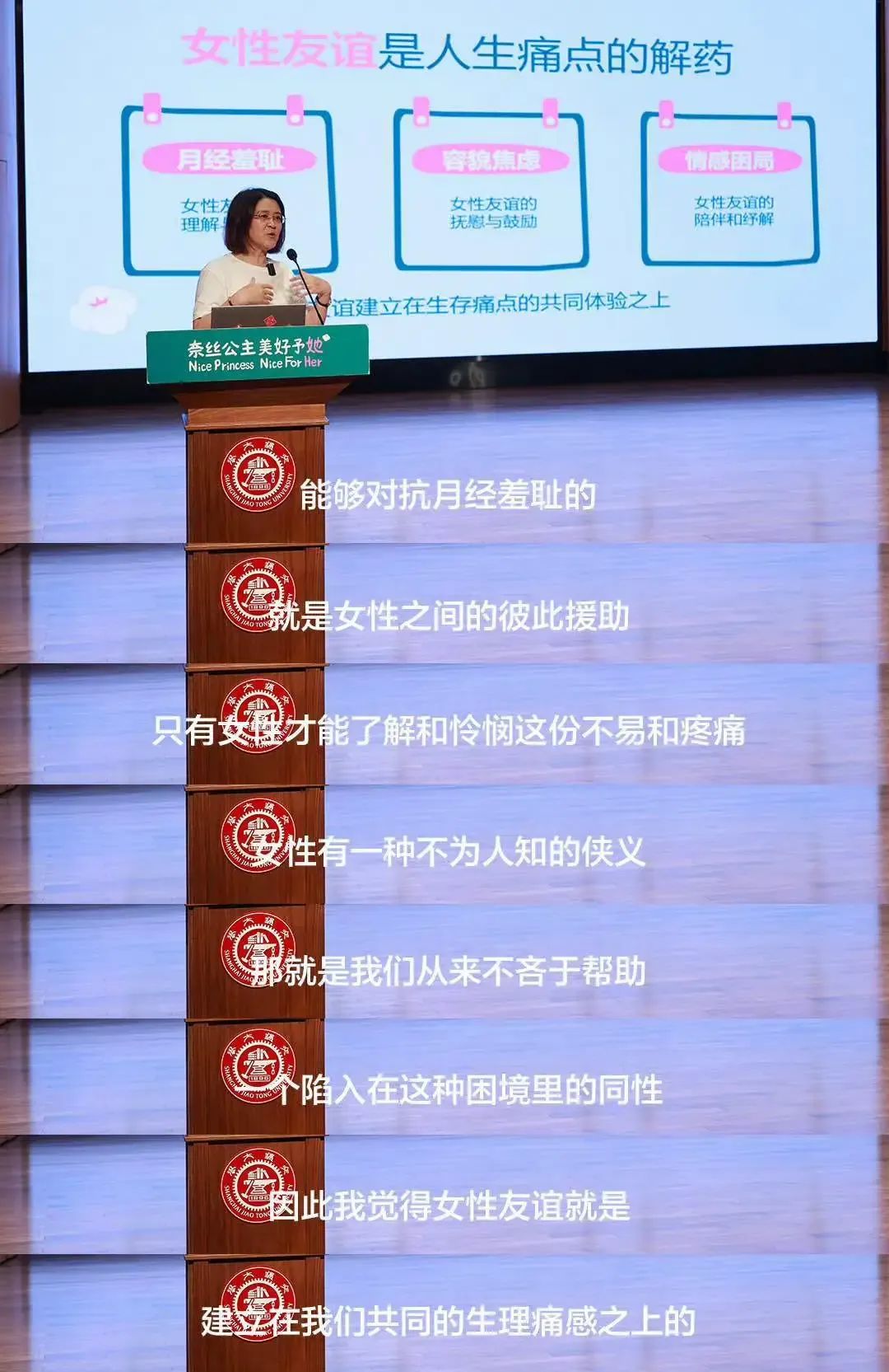 9月22日,全棉时代|奈丝公主「Nice For Her 美好予她」经期女性友好行动校园季特别策划「我最好的那个女同学」正式上线,并邀请上海交通大学的杜素娟教授开启了一场公益讲座。