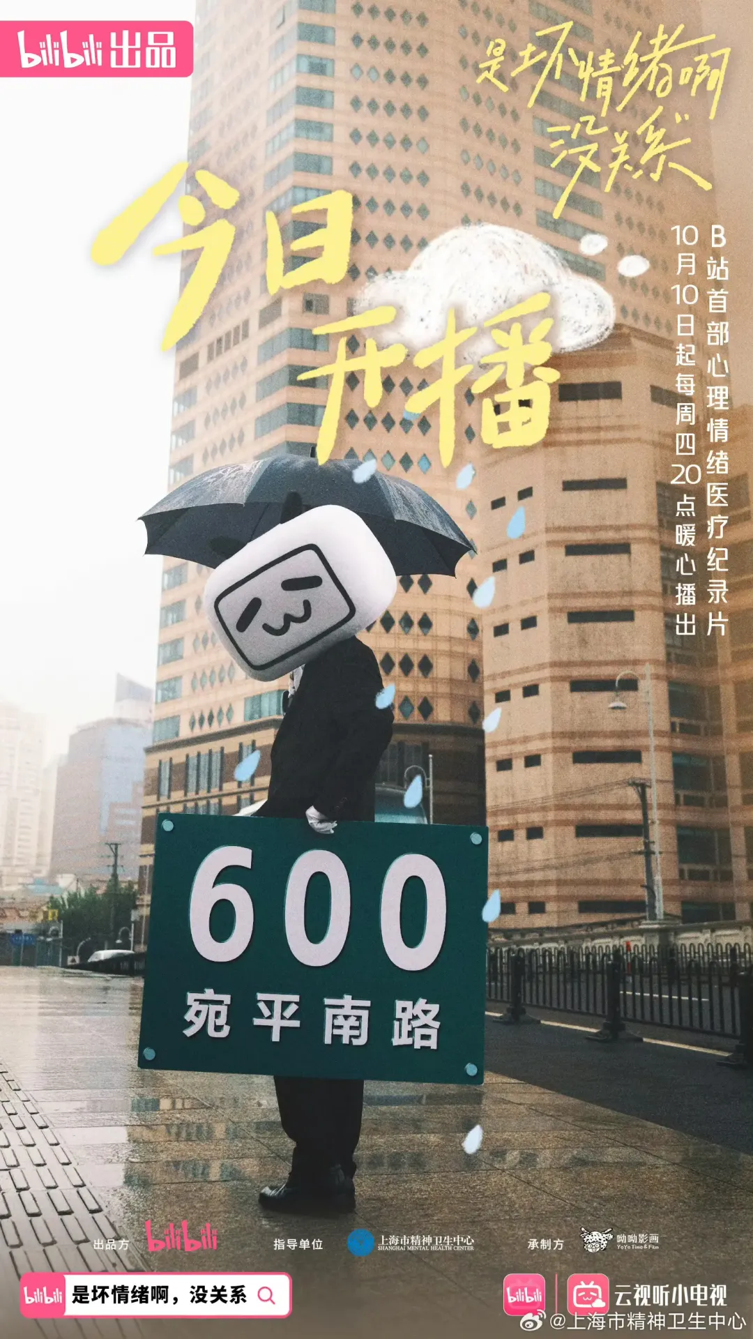 上周四恰逢10月10日的世界精神卫生日,上海精神卫生中心与B站联合制作了首部聚焦于心理健康的纪录片《是坏情绪啊,没关系》。