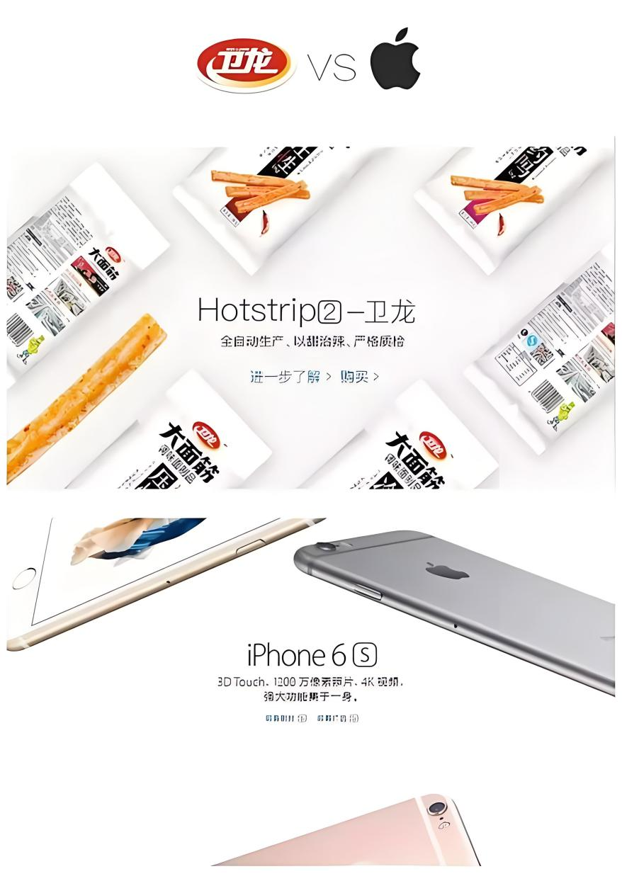 早在2016年,卫龙便以苹果的设计风格为灵感,对其淘宝旗舰店进行了全面的改造。