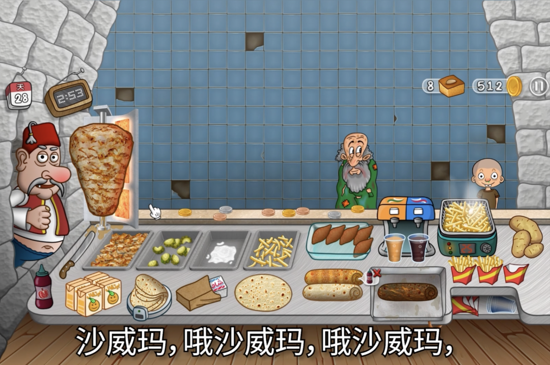 从游戏的实际体验来看,《沙威玛传奇》的爆火着实有些令人意想不到:打开游戏映入眼帘的是美漫风格的简陋画风,让人感觉瞬间回到10年前的“4399小游戏”;具体游戏玩法上,先准备各种食材,然后一步步制作完成土耳其烤肉的操作,也与许多已有的美食经营类游戏没有太大分别。