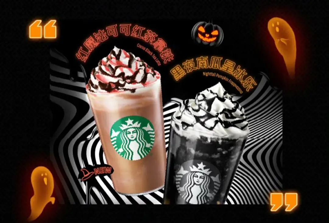 万圣节倒计时的钟声响起️,星巴克『这一杯已黑化』邀请你加入限时黑夜派对!