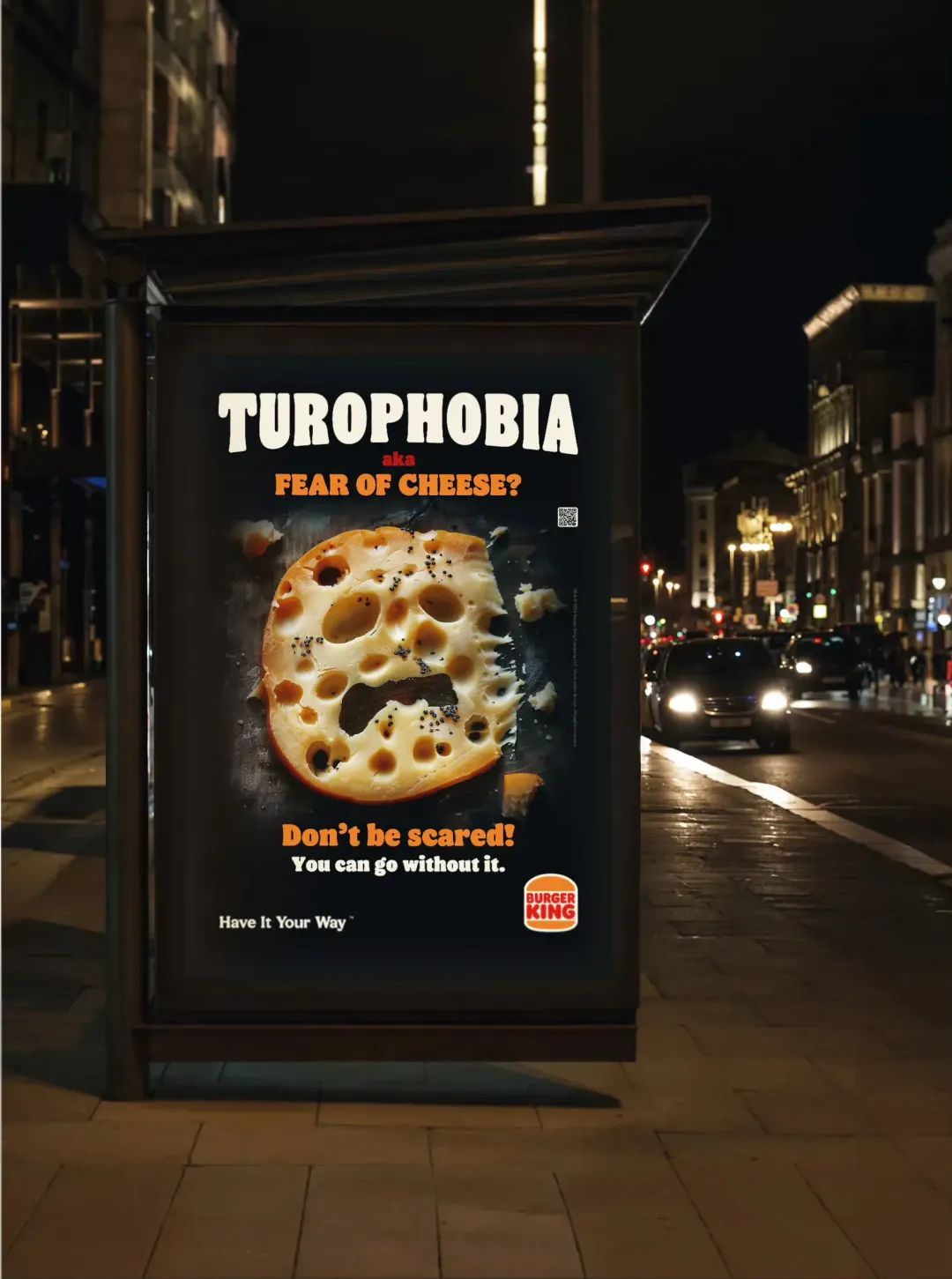 今年万圣节,汉堡王推出了一组很有意思的广告海报,主题为“直面恐惧”。他们将汉堡里的芝士、番茄、洋葱等食材切片,伪装成鬼脸的样子,将广告海报投放在路边街头,营造出一种恐怖神秘的节日氛围。