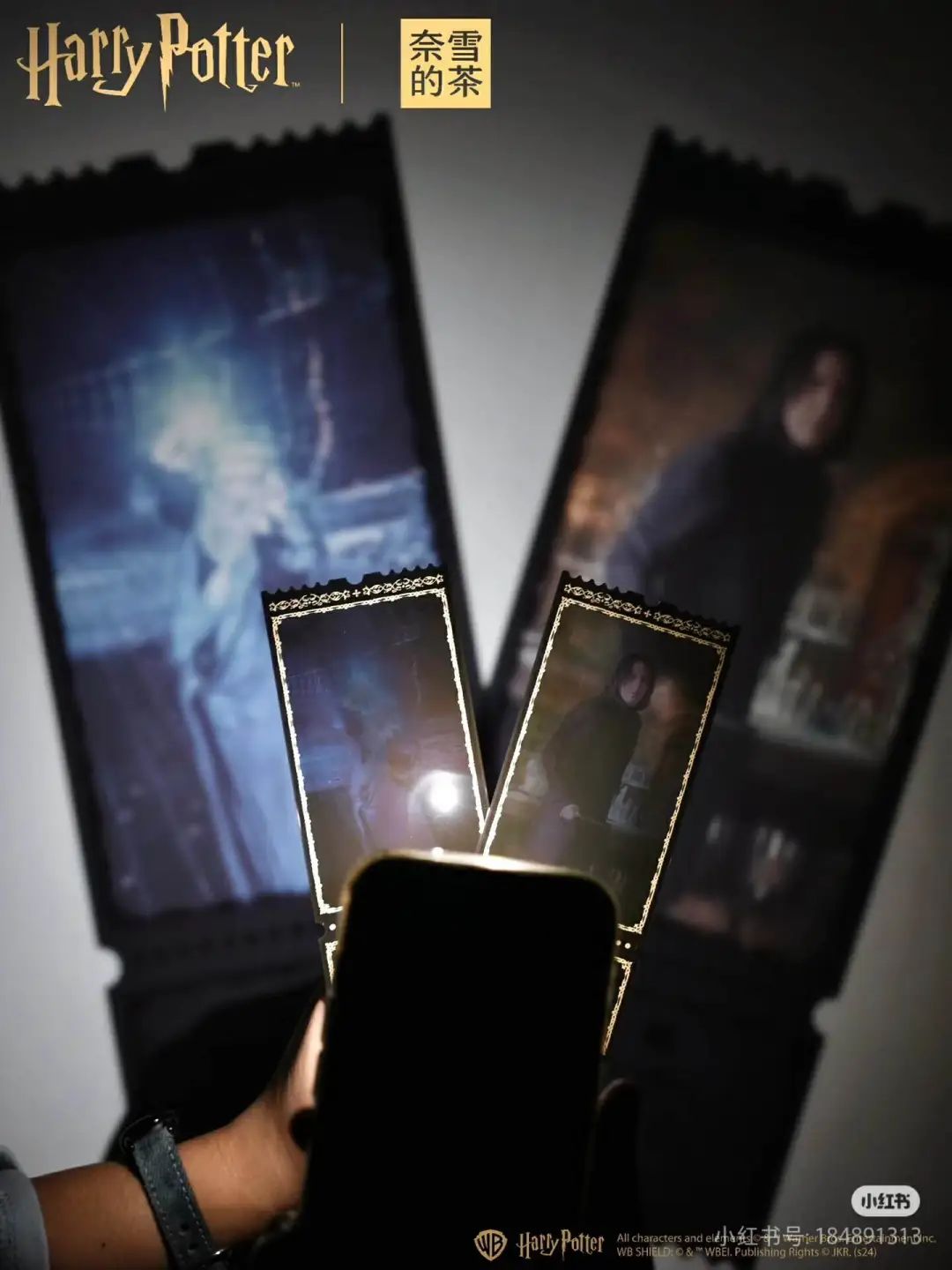 黑魔法主题夜光纸袋、8款人物盲盒亚克力票根、黑魔法夜光不锈钢吸管杯、分院帽陶瓷马克杯、咒语陶瓷盘、黑魔标记金属贴、黑魔标记纹身贴、哈利波特斗篷毛毯、悬赏令镜子等。