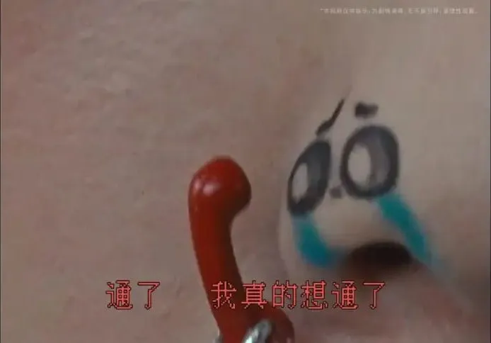 情景里出现一个女生,镜头突然切近景,发现鼻子才是重点!她鼻子上画了一个小人哭泣的表情,可爱捏