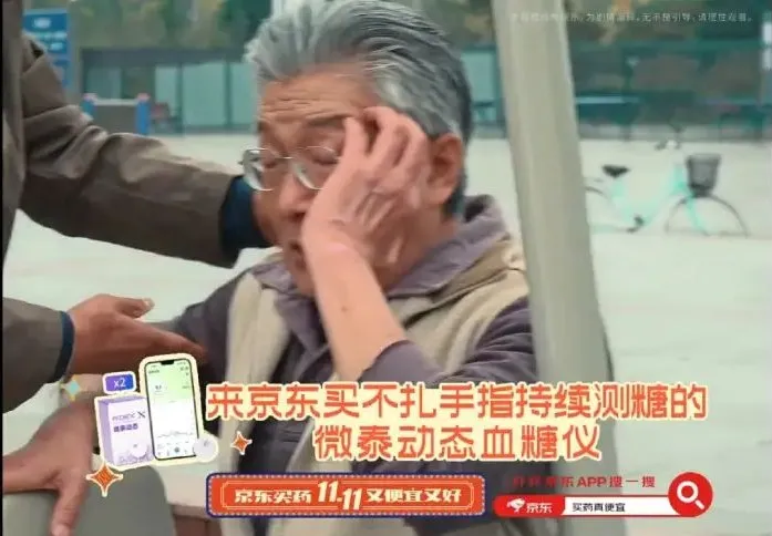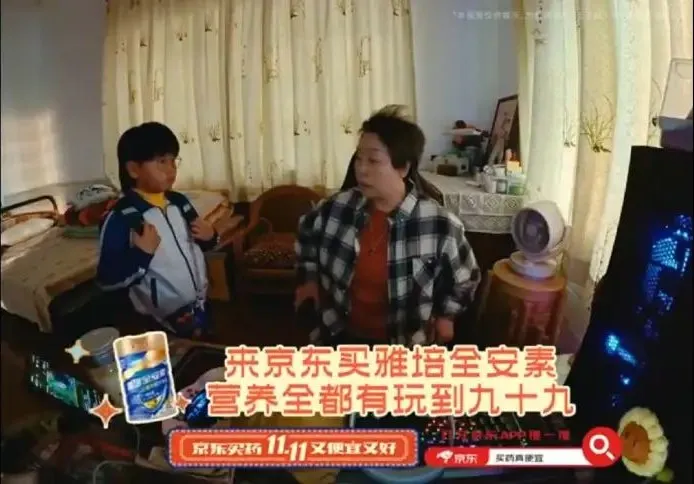 小剧场结束,屏幕闪现广告词:来京东买雅培全安素,营养全都有,活到九十九!