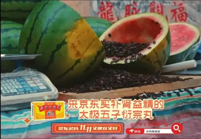 此时,屏幕又恰到好处地弹出了广告词:来京东买补肾益精的太极五子衍宗丸!