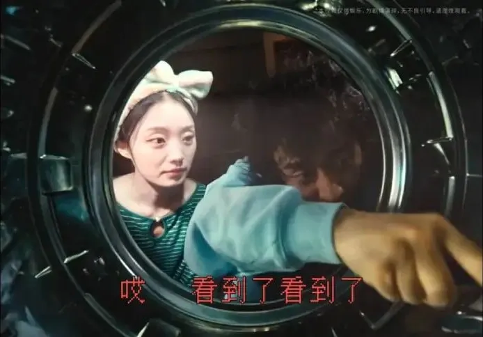 这时的洗衣机圆形开口也变成了CD机,开始播放:你是落在我世界里的一束光