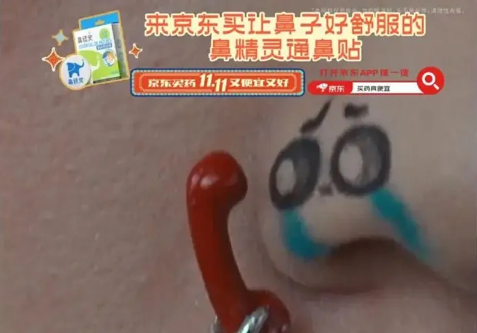 屏幕上方出现广告词:来京东买让鼻子好舒服的鼻精灵通鼻贴!