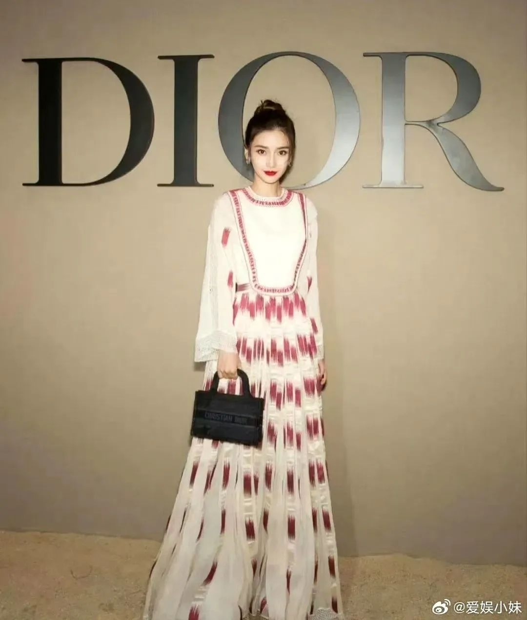 首先是angelababy,她作为迪奥中国的品牌大使,在那场由黄晓明为她举办的世纪婚礼背后,是由迪奥赞助,婚纱、婚纱照服装和配饰也均由迪奥提供,可以说,迪奥几乎可以算是他俩之间爱情的象征。