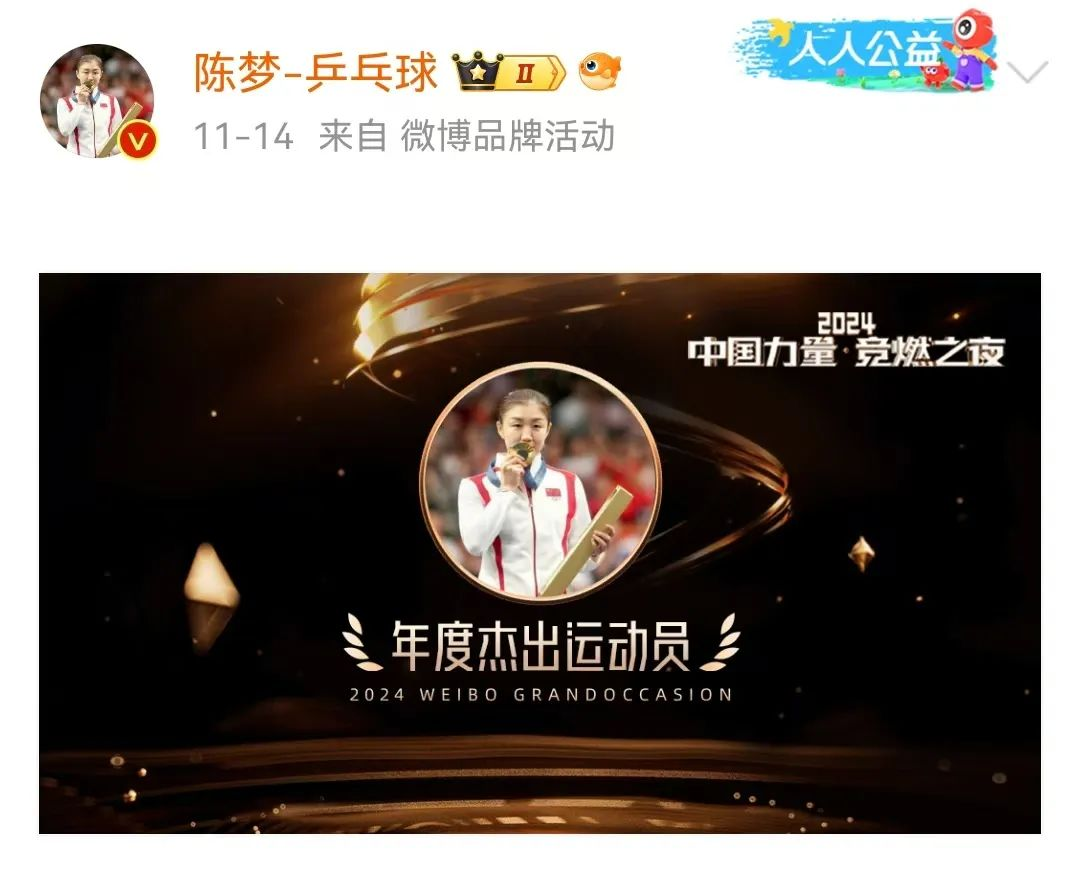 在11月14号举办的微博竞燃之夜上,咱们的女乒卫冕冠军陈梦,荣获年度杰出运动员的称号,在颁奖典礼结束后,堪称2024年最让人感动的一幕出现了——有好多好多观众在台下大喊“陈梦加油!”,补上了在巴黎女单决赛上大家欠陈梦的加油。