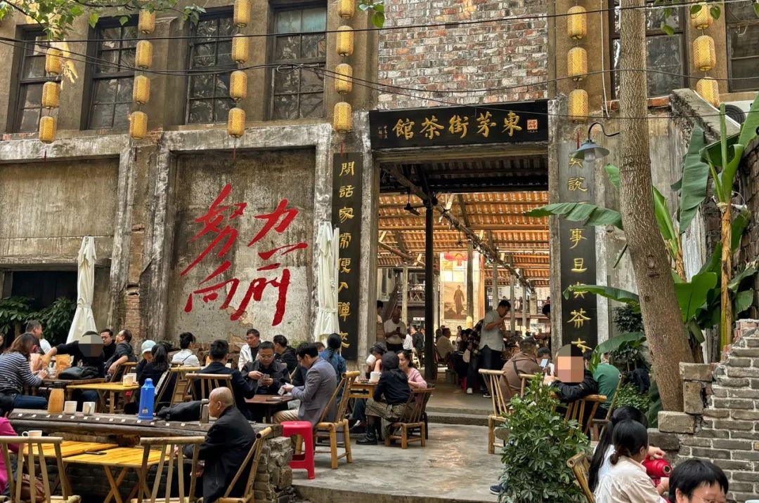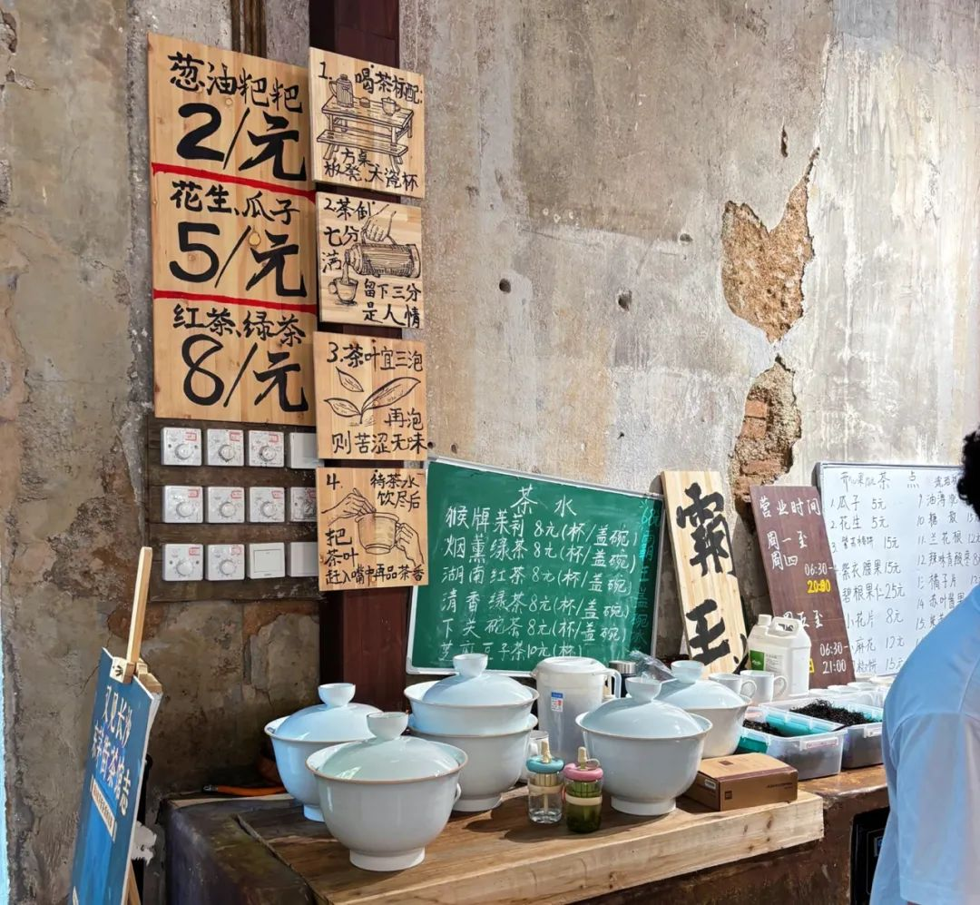 在中式茶馆都在卖围炉煮茶、一茶三喝,都在用精美的器皿造情绪价值时,东茅街的茶,却十分朴素。