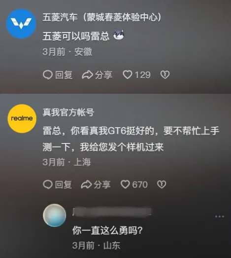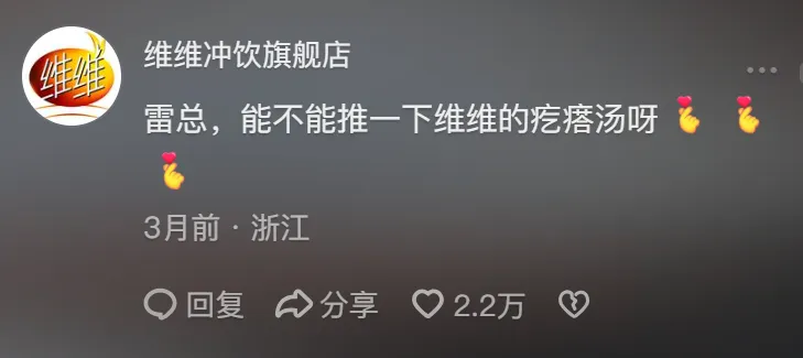 就连官号也开始在雷军评论区“发癫”。雷总在抖音发了条视频,澄清“我真的没有接商单,但愿意免费推荐好的产品”,结果17万+的评论区炸出一堆“干儿子”。