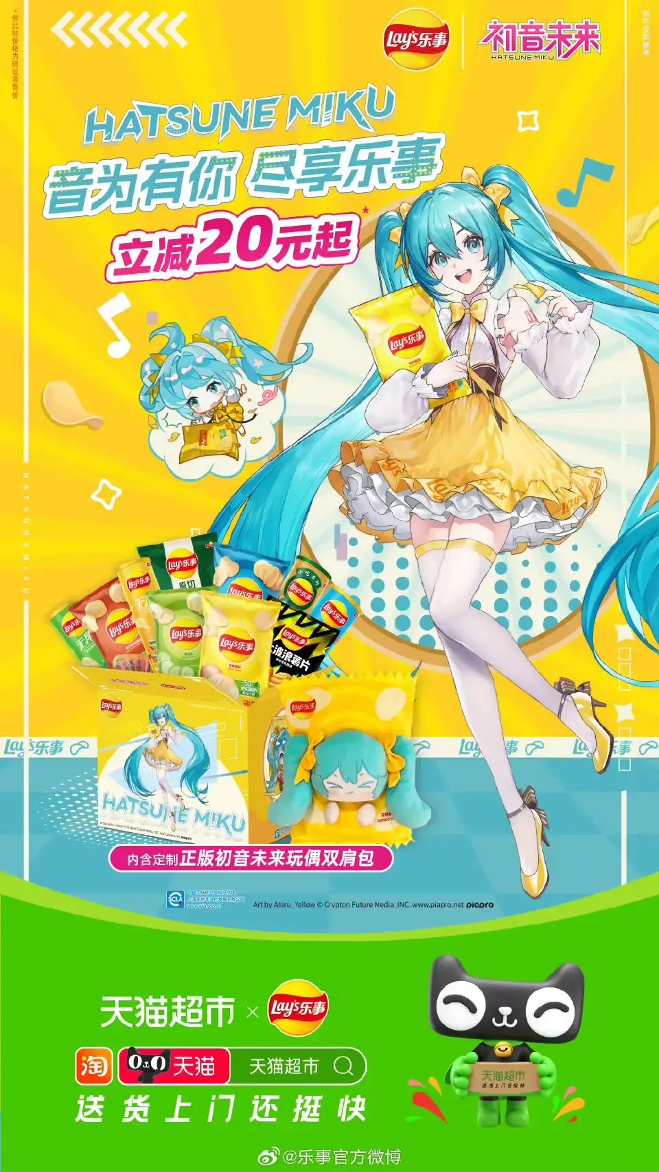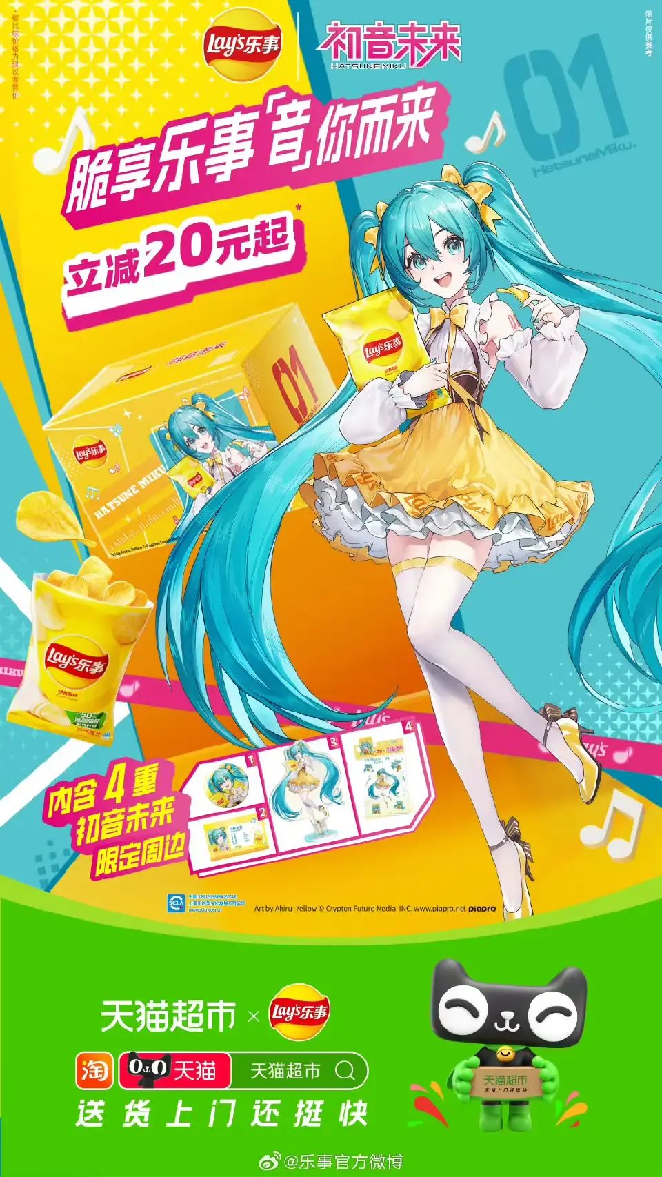 近日,乐事薯片&《初音未来》联名零食大礼盒上架!解锁独家原创谷子,和虚拟歌手一起打破次元壁!