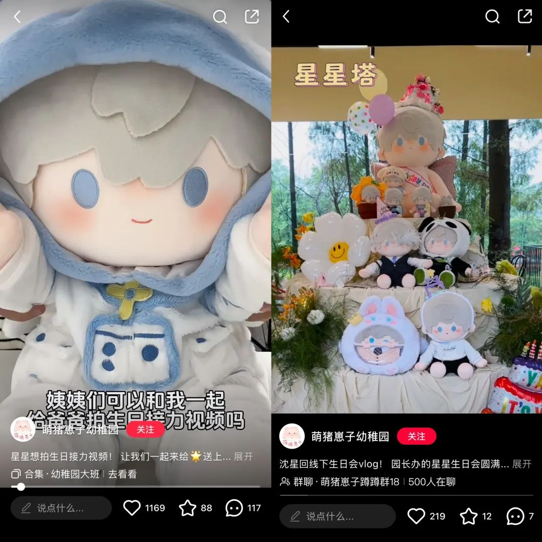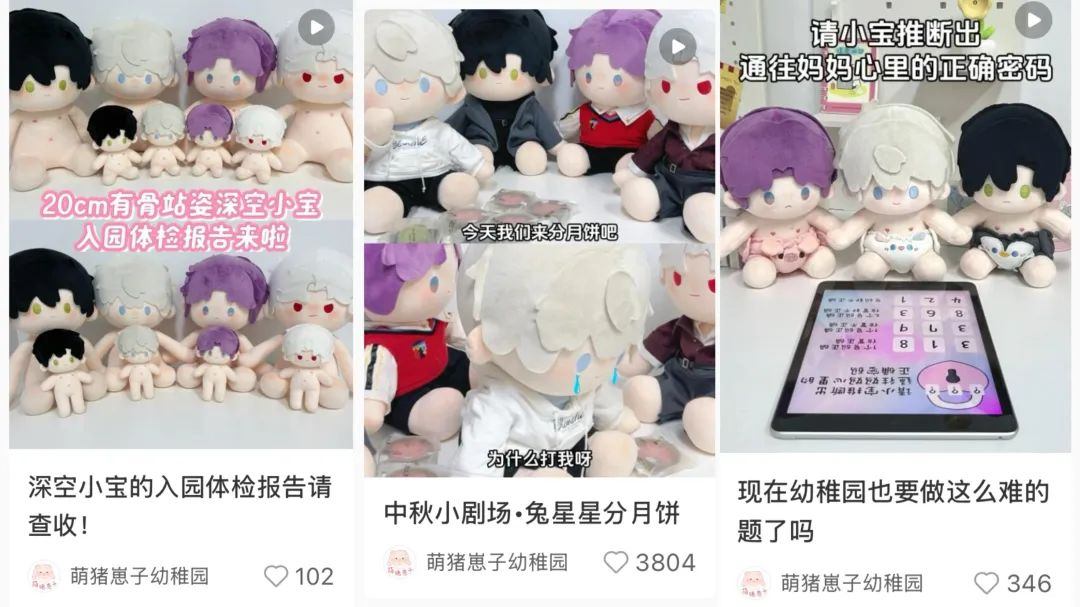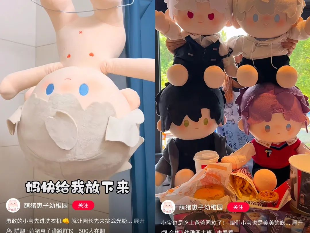 在 @萌猪崽子幼稚园 的账号中,介绍新款娃娃是请妈咪们查收小宝的入园体检报告;娃衣上新,宝宝们还会集体拍变装视频;《恋与深空》与肯德基联名,园长就带着宝宝们去肯德基吃薯条和汉堡;中秋节宝宝们还有分月饼小剧场……