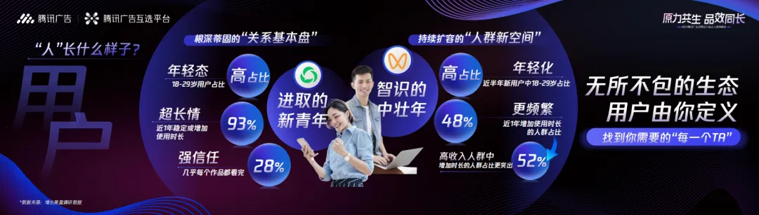 视频号整体用户数量的增长,吸引了品牌的关注,其中包括高净值用户的增长。近半年18-29岁的年轻用户在视频号新用户中的占比达到了38%;近一年增加了视频号使用时长的用户占比达到48%;而在这48%增加使用时长的人群中,52%为高收入人群。