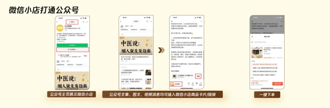 而公众号能够展示微信小店,公众号文章、图文、视频、消息均可插入微信小店的商品卡和链接,公众号能够直接跳转直播间,这些联动能力均给微信生态的图文种草带来了更多的可能性。