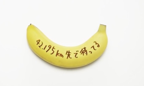 17年东京马拉松期间,都乐还设计了一支能在香蕉上写字的可食用无色墨水笔。用这款无色墨水在香蕉上写字,5分钟后棕色字迹会慢慢显现。他们一本正经地把笔命名为“Banapen”,鼓励人们在香蕉上写下对跑者的祝福:“完赛祈愿”、“我在42.195公里处等你”、“爸爸是世界第一的跑者”。