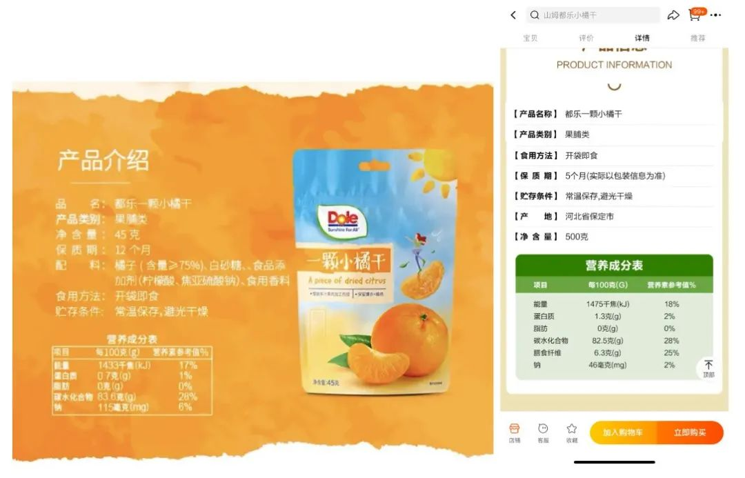 “一颗小橘干”的制造商都乐,几年前就在自己的官方旗舰店上卖起了同款,但直到在山姆上架,才开始推出“减糖特供版”。