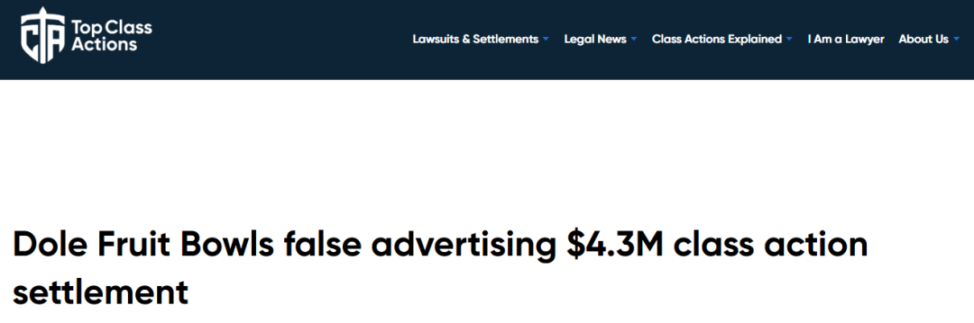 物极必反的道理在都乐这里体现得淋漓尽致:都乐力推的“天然水果碗”在去年被曝出虚假宣传——水果碗的果汁实际上含有“微量抗坏血酸和/或柠檬酸或其他成分”。法院要求都乐赔偿430万美元给美国地区近五年所有购买了水果碗的客户。
