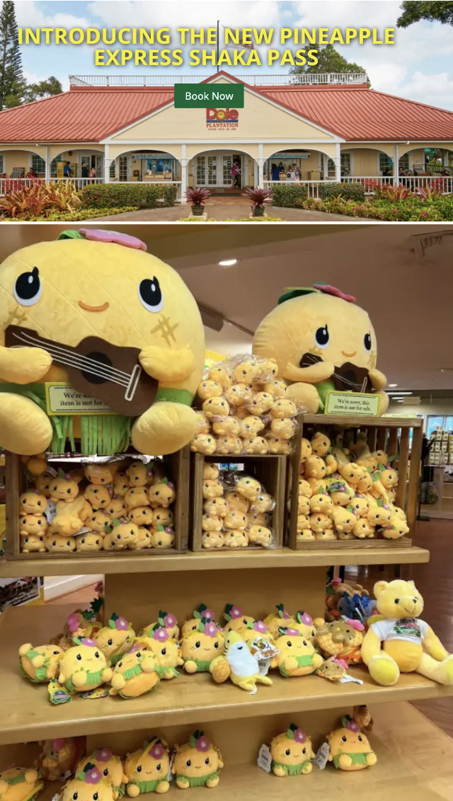 都乐另一款出圈水果是他们的金菠萝。1901年,詹姆斯·多尔成立夏威夷菠萝公司(Hawaiian Pineapple Company),在夏威夷欧胡岛的高原建起第一个菠萝园,算是都乐的前身。为了纪念这段历史,都乐专门在他们的老家夏威夷建了一个供游客参观的菠萝种植园,堪称“菠萝版迪士尼”。菠萝园里不仅有卡通小火车、菠萝迷宫这样的“游玩项目”,以及上百种神似HelloKitty的菠萝卡通娃娃周边,园内还有一个主题餐厅,所有餐品都用菠萝制作,包括牛肉饼。