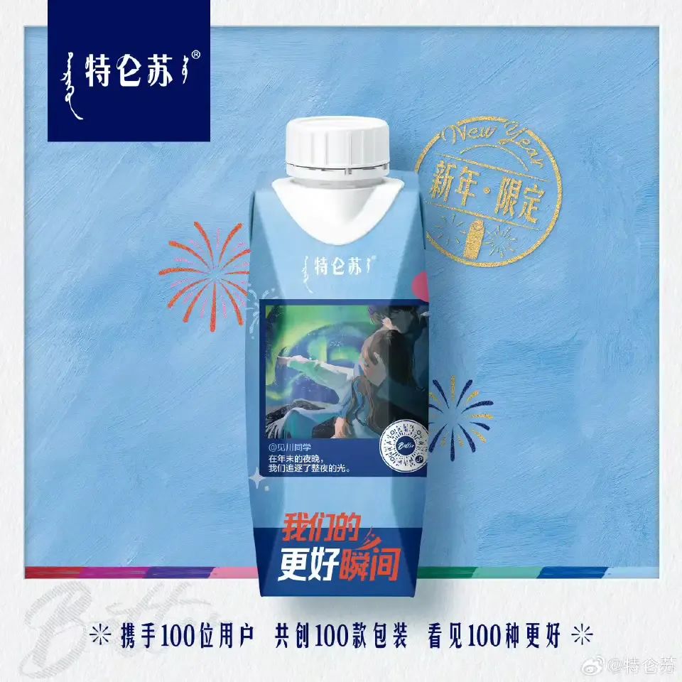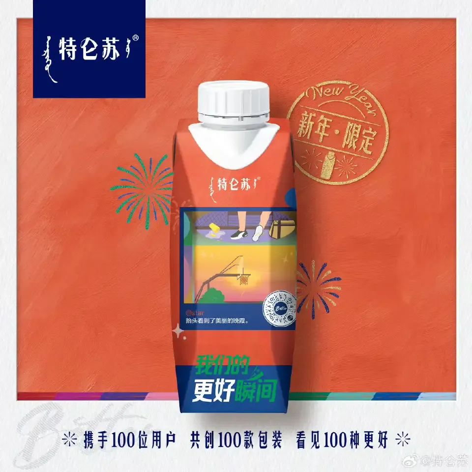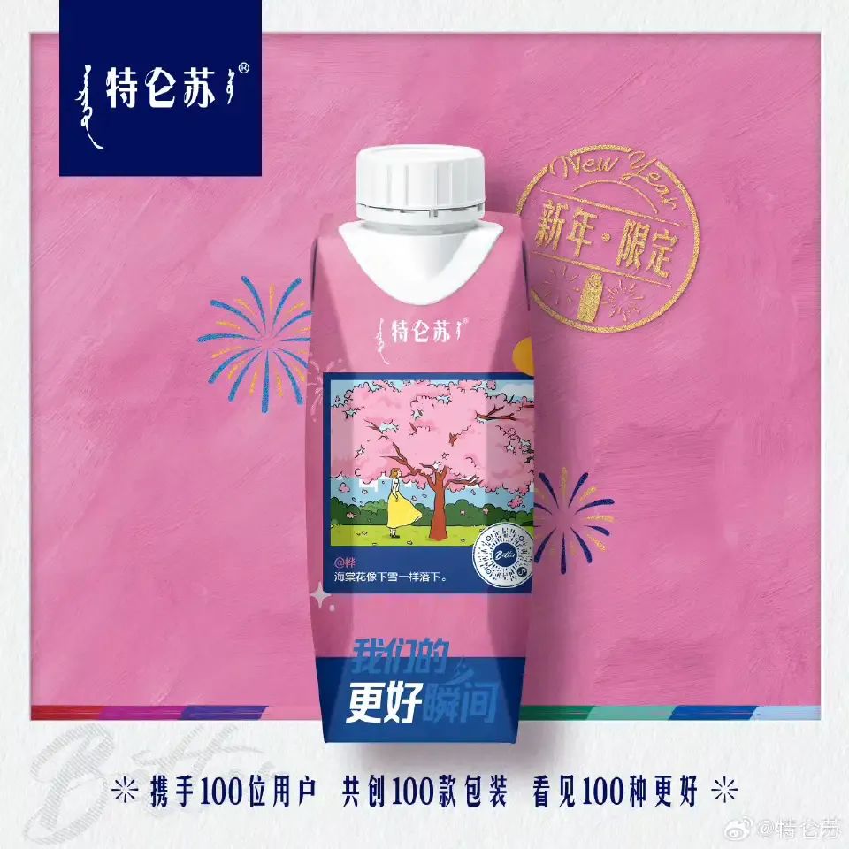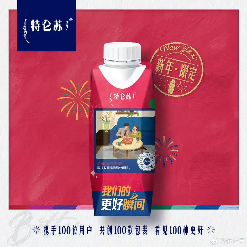 每年,特仑苏都会与易烊千玺一起聊起『更好』瞬间。而今年,有了更多人的加入,品牌收集了包括易烊千玺在内的100个用户的真实瞬间,由15位插画师创作成插画作品,共创出100款【特仑苏新年限定款】包装。