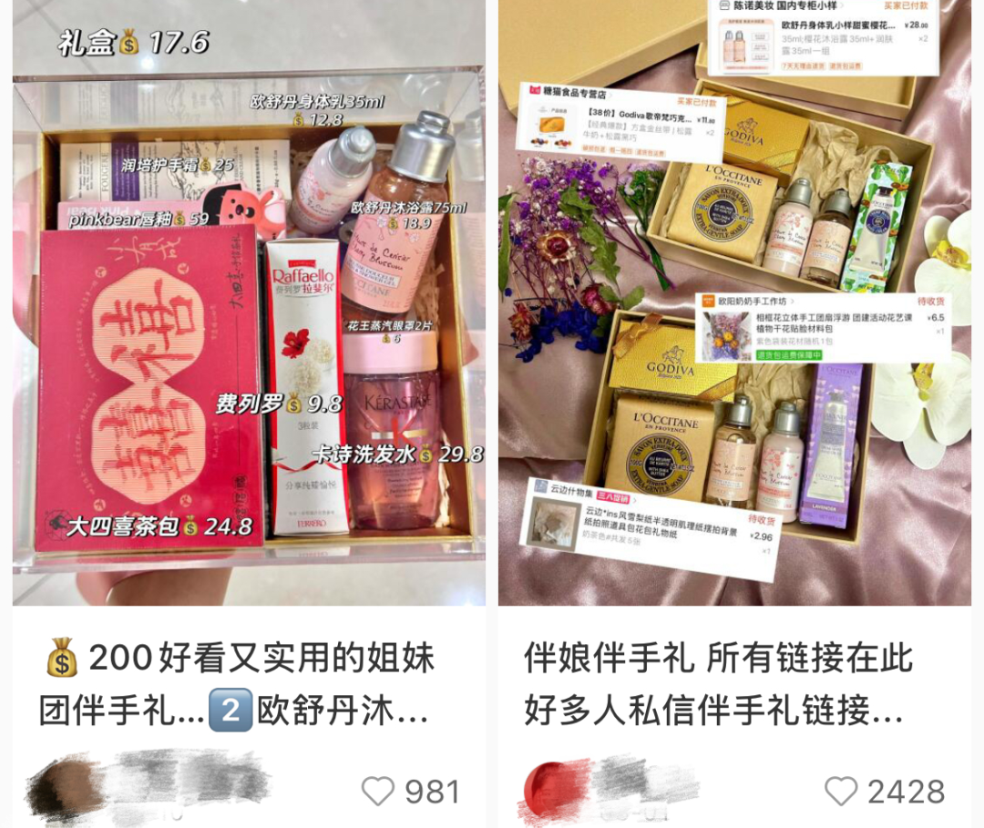 “被伴娘团夸爆”“被长辈说是懂事”,在人均300-500的婚礼伴手礼中,流水的巧克力糖果品牌,铁打的欧舒丹。几十块的30ml是本分,100多的大支装是情义,听闻你只要多上几次份子钱,就可以攒齐一年的护手霜。