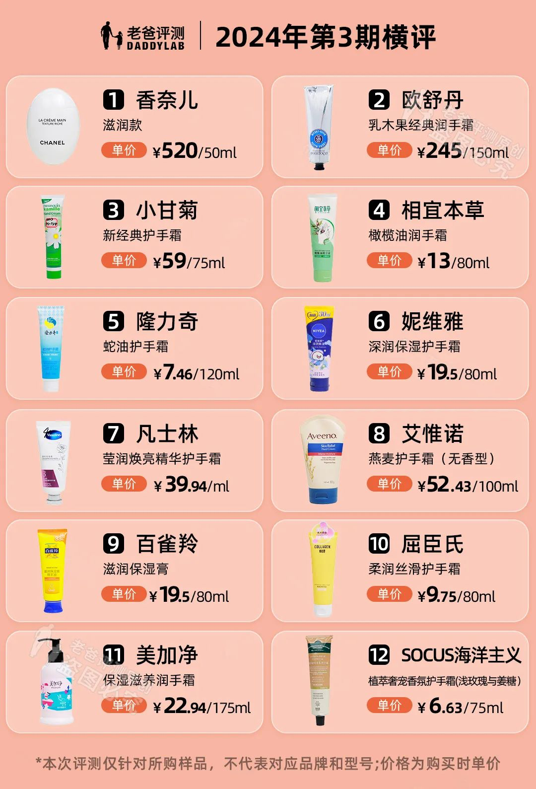 老爸测评,《12款护手霜,7块钱的赢麻了,但是...》,2024.01