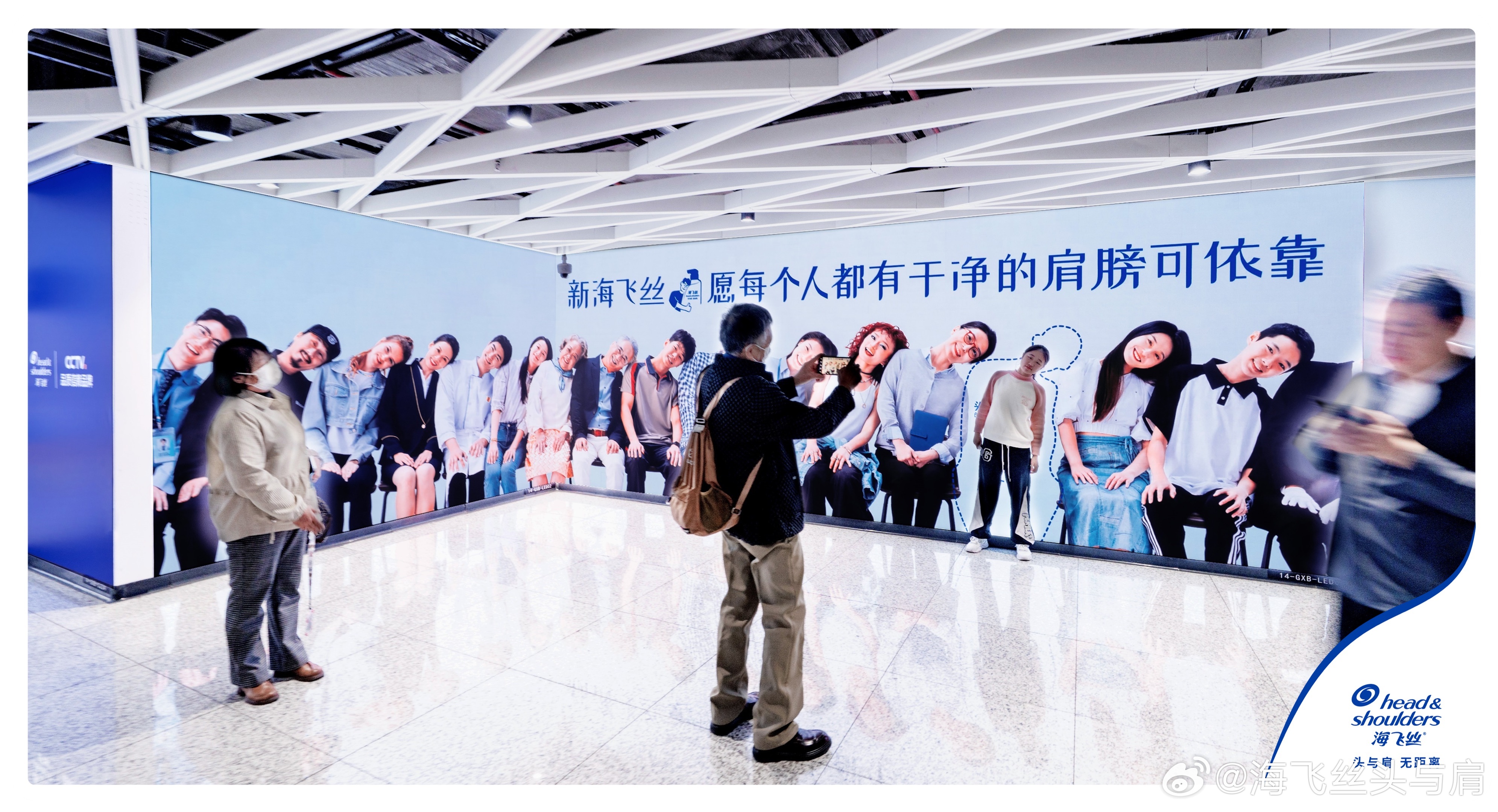 好长的广告啊,中间留个空位给大家打卡~一眼扫过去,尽头居然是一瓶比人还大的海飞丝。