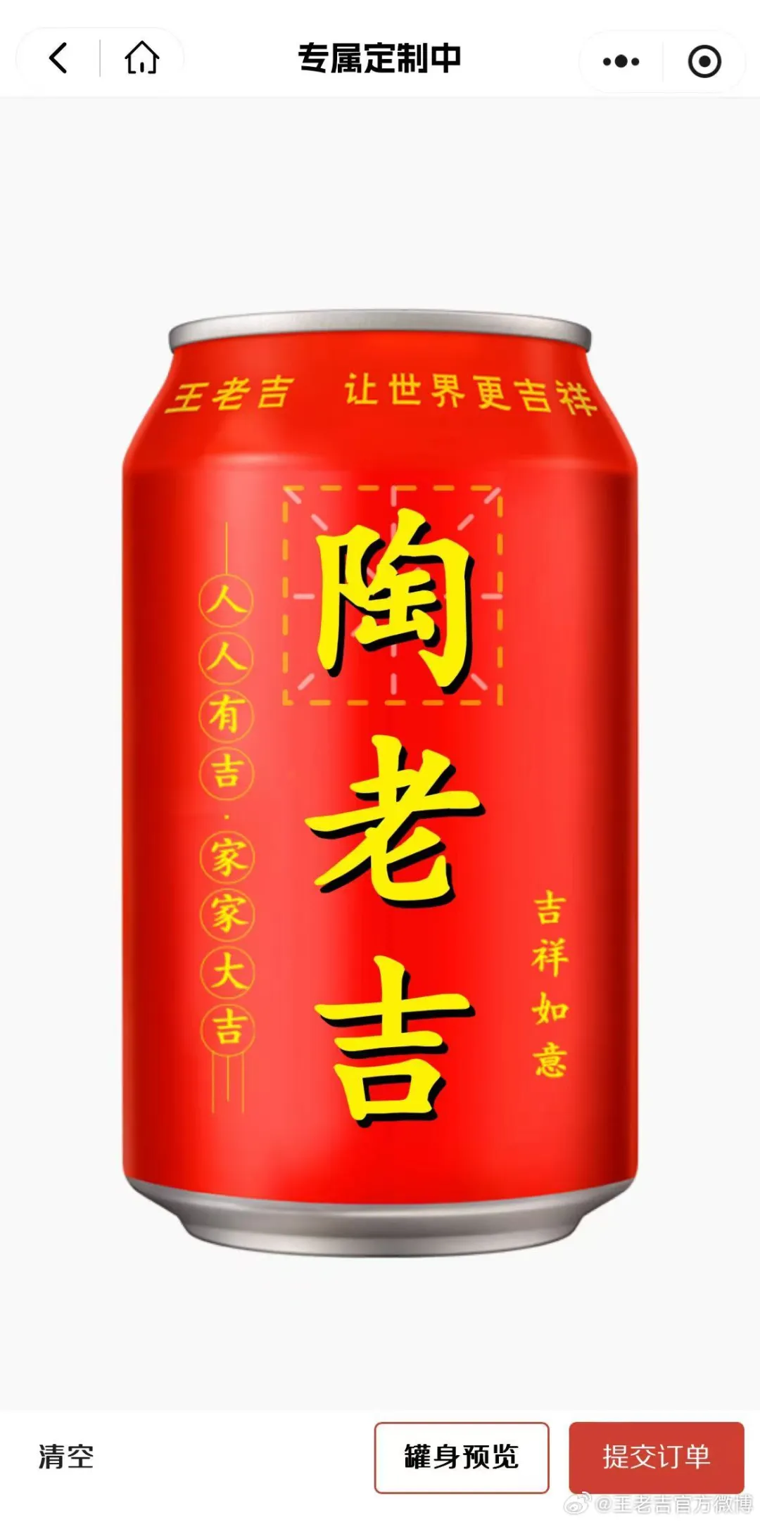 官方只能邀请大家去定制“陶老吉”罐,然后再和“吉吉吉吉”罐拼起来。xs,好歹也算是长吉啦~