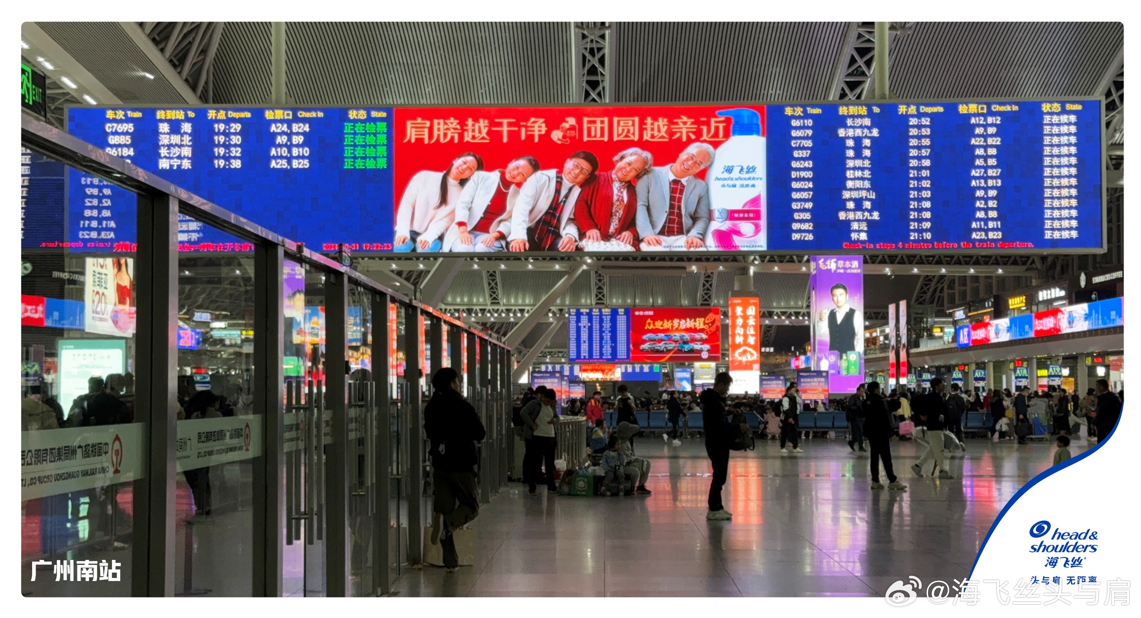海报文案都与海飞丝的名字head & shoulders(头和肩)有关——“愿每个人都有干净的肩膀可依靠”;火车站投放的广告还贴靠春节回家的场景——“肩膀越干净,团圆越亲近”。海报不仅有视觉冲击力,还诉诸于情绪价值。