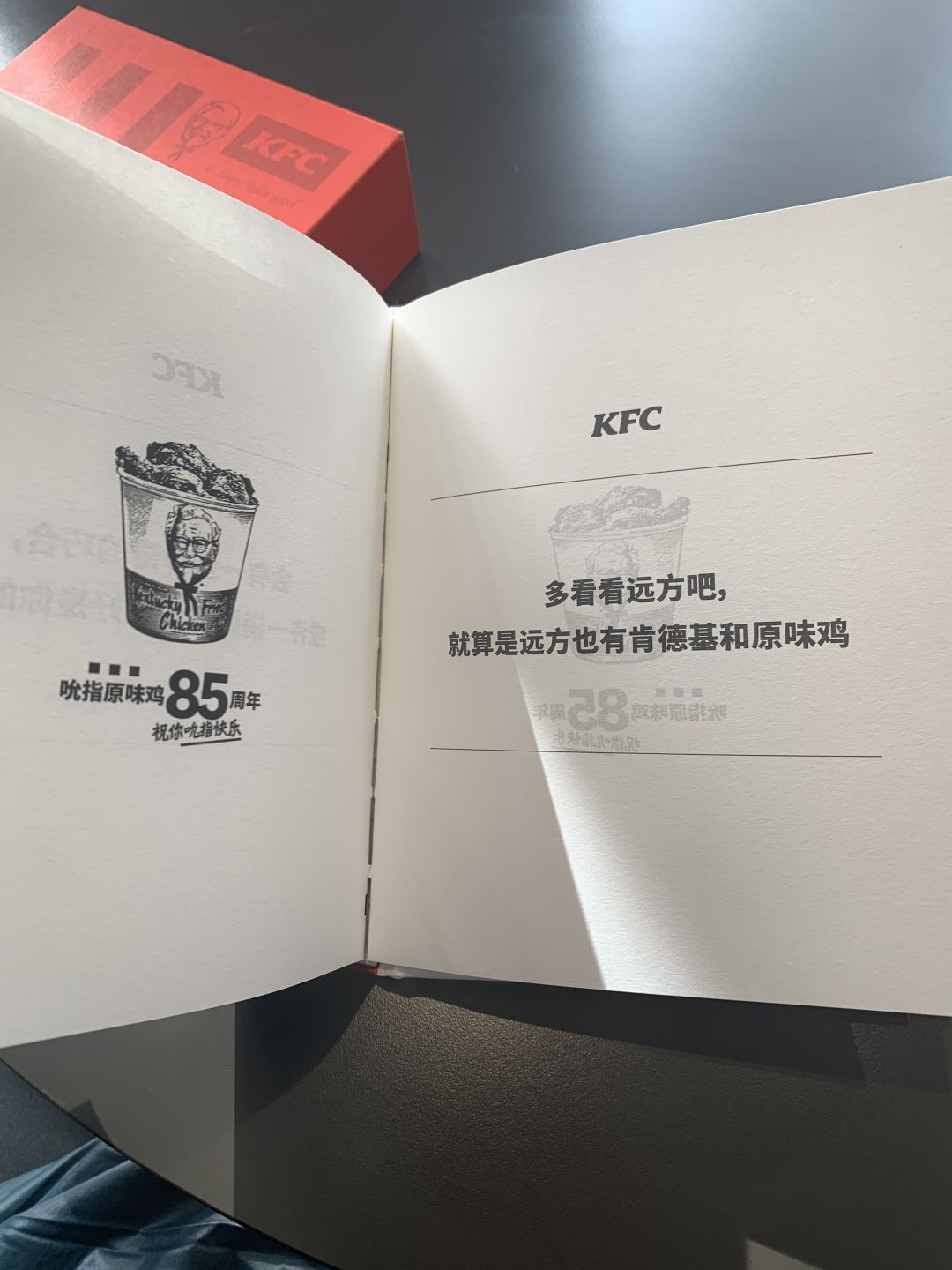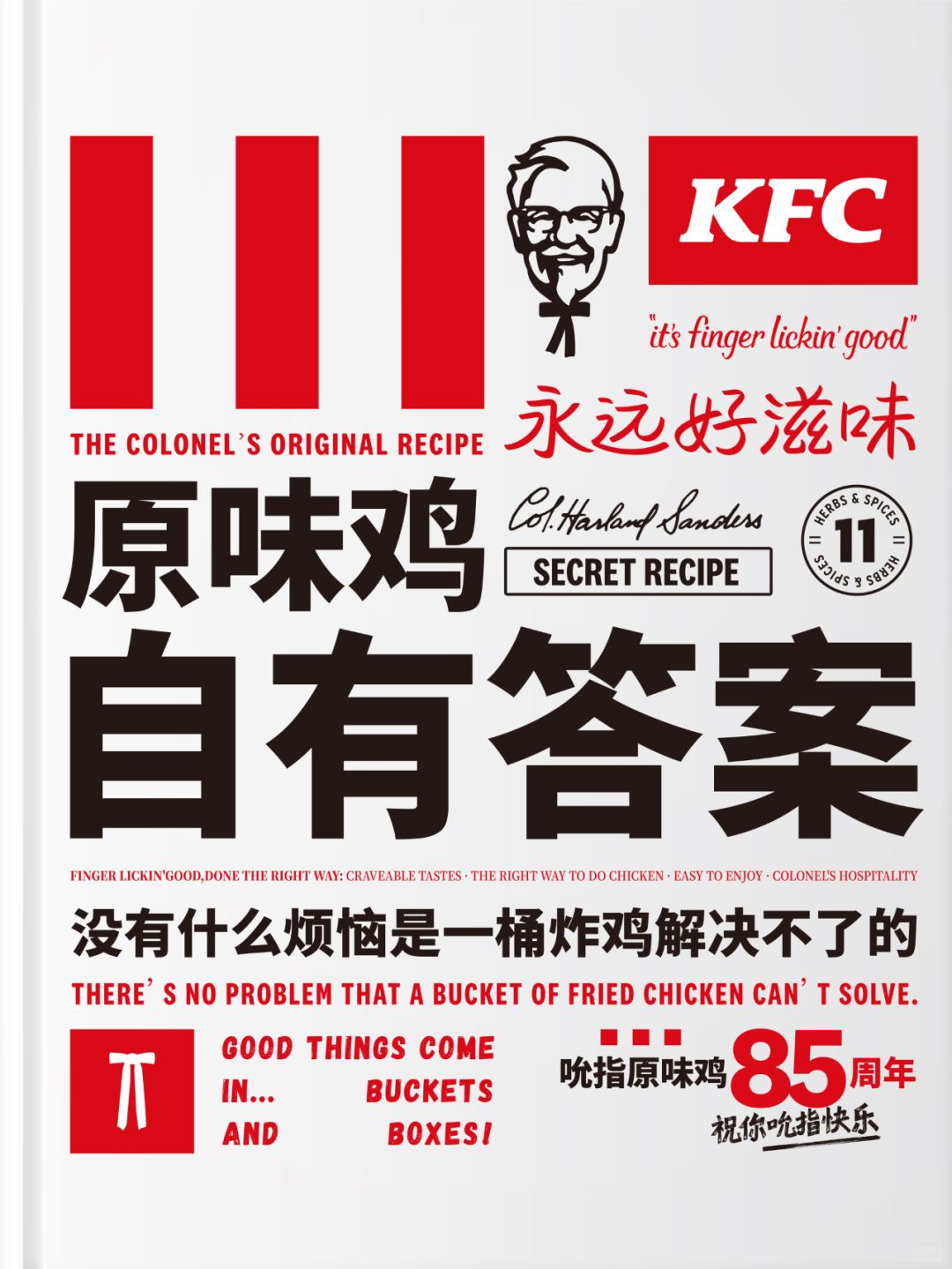 除了两款新产品,肯德基还推出了一本书《原味鸡自由答案》。官方的说法是:当你找不到方向的时候,翻开这本书看看,“好滋味”经得起时间的考验,“真智慧”亦是。
