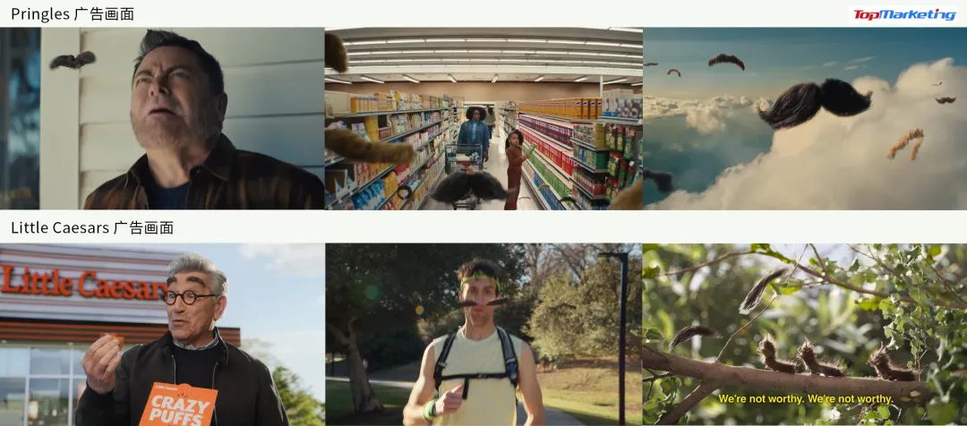 你很难想象在超级碗这样盛大的赛事上看到两个创意相似度为90%的广告,然而 Pringles(品客)和 Little Caesars(小凯撒)做到了。