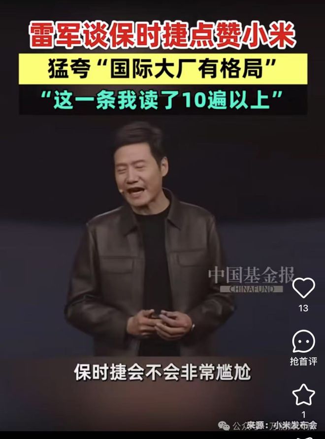 如果说保时捷点赞和首富,都是意外之“梗”,大叔认为,雷军皮衣,一定是提前想好的。