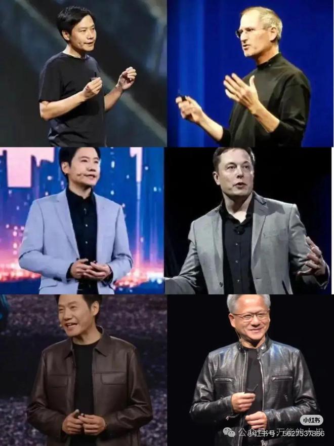其实,从过去10年,我们能看到,雷军在发布会的穿着,都不是随便穿的,他总是在对标科技圈的大佬,从乔布斯到马斯克,再到黄仁勋。
