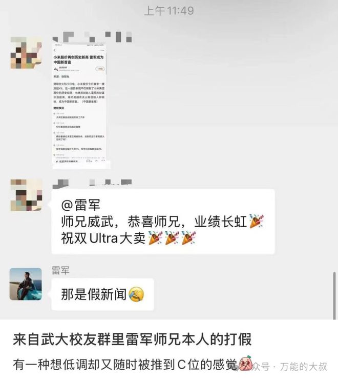 雷军迅速在群里辟谣“假消息”,并迅速引流到发布会。