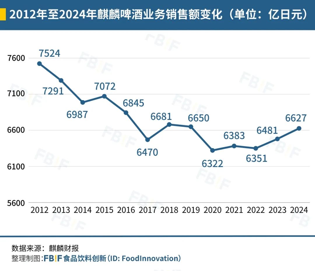 目前,由啤酒起家的麒麟仍然手握着庞大的酒类业务。2024年麒麟酒类的销售额达到1.08万亿日元,在整体营收中占比达到46.2%,其中,啤酒业务的营收达到6627亿日元,利润达到751亿日元[1]。2022年,麒麟在日本啤酒市场上的份额达到35.7%,仅次于朝日(36.5%)。[8]既然如此,麒麟为什么急于摆脱其“啤酒公司”的定位?