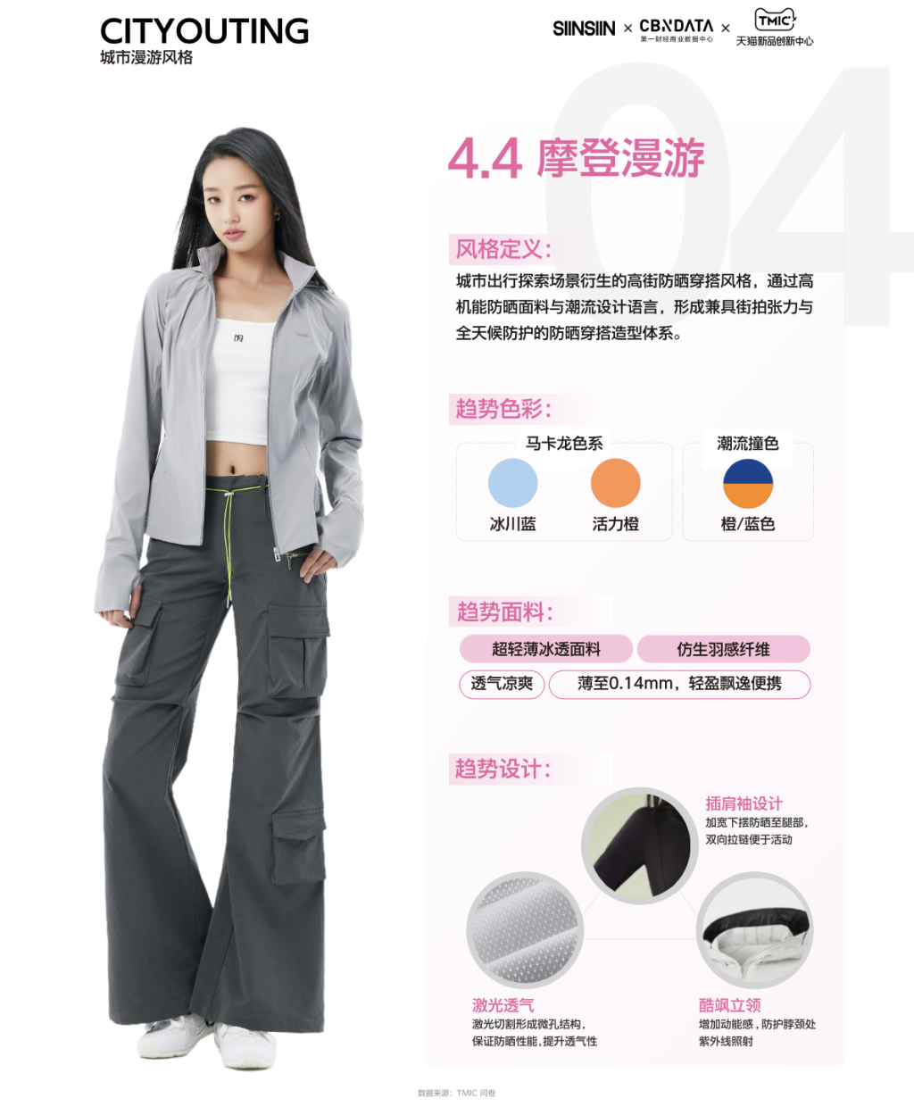 在CITYOUTING的整体风格下,CBNData通过解构四大高频穿搭场景,对时尚防晒服饰细分品类趋势进行拆解。