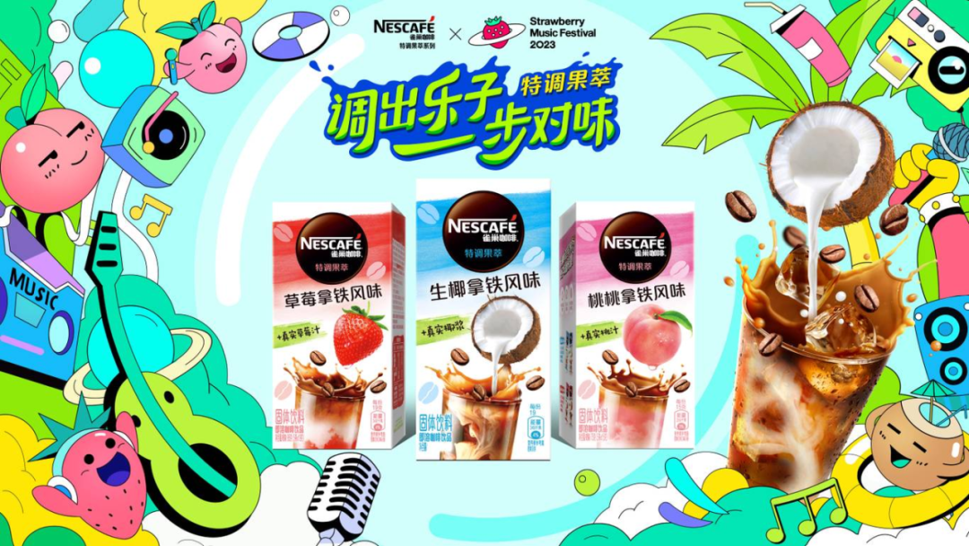 针对演唱会场景,雀巢咖啡还在2023年携手草莓音乐节,以#调出乐子,一步对味#为名推广其特调果萃系列产品,在音乐节现场派赠产品、创意周边,以及“内置”音乐的跨界联名礼盒等,吸引年轻人在音乐中感受咖啡,在咖啡里感受音乐。