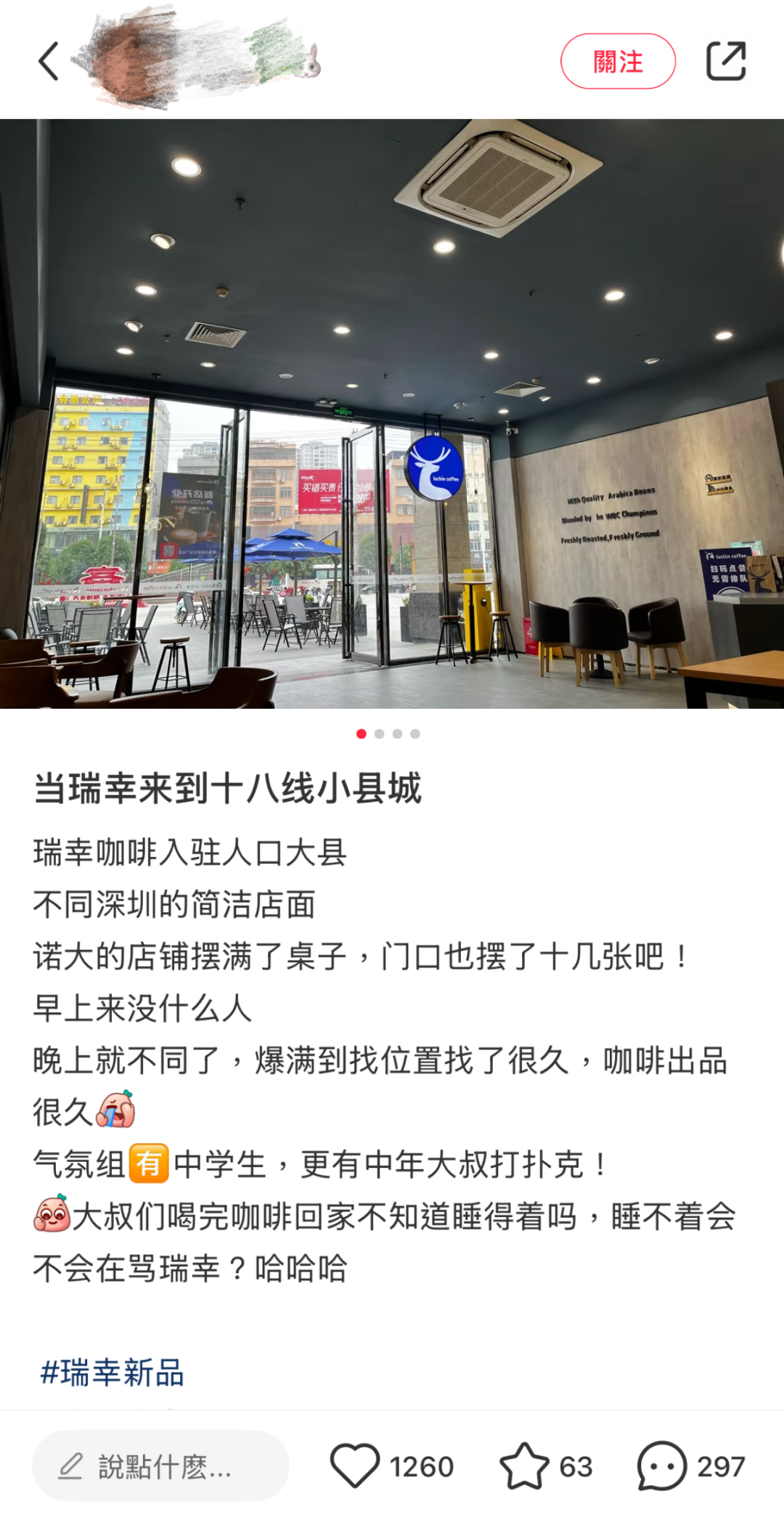 而对于瑞幸来说,某种意义上也是在学习星巴克。瑞幸在一二线市场主要开小店,聚焦咖啡刚需用户;而到了三四线城市则是逐步开大店,聚焦社交场景。因为对于“小镇青年”们来说,他们去咖啡店不只是为了喝咖啡,而是需要一个满足社交需求、和朋友消磨时光的场所,并能彰显自己的审美品味和生活方式。