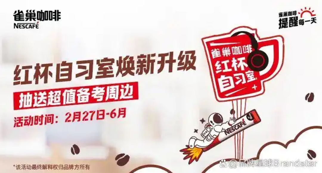 2023年高考季,雀巢咖啡又跨界联合清华大学,将红杯研习室落地在校园内,为学生们打造惬意的学习环境,并用咖啡激发他们的创新灵感,成为清华学子创新创业的实践空间。