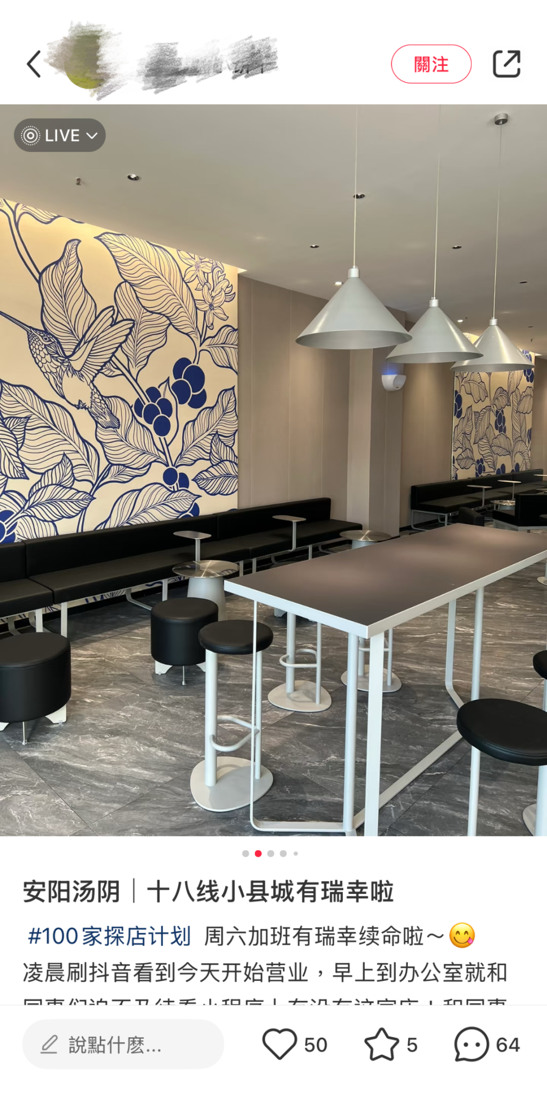 对瑞幸来说,它在大城开小店做coffee生意,基于自提、外带业务的办公场景和逛街场景是它的基本盘,而现在瑞幸则开始在小城开大店做café生意,想要加码社交场景去抢奶茶店和星巴克的生意,获得新的增量。