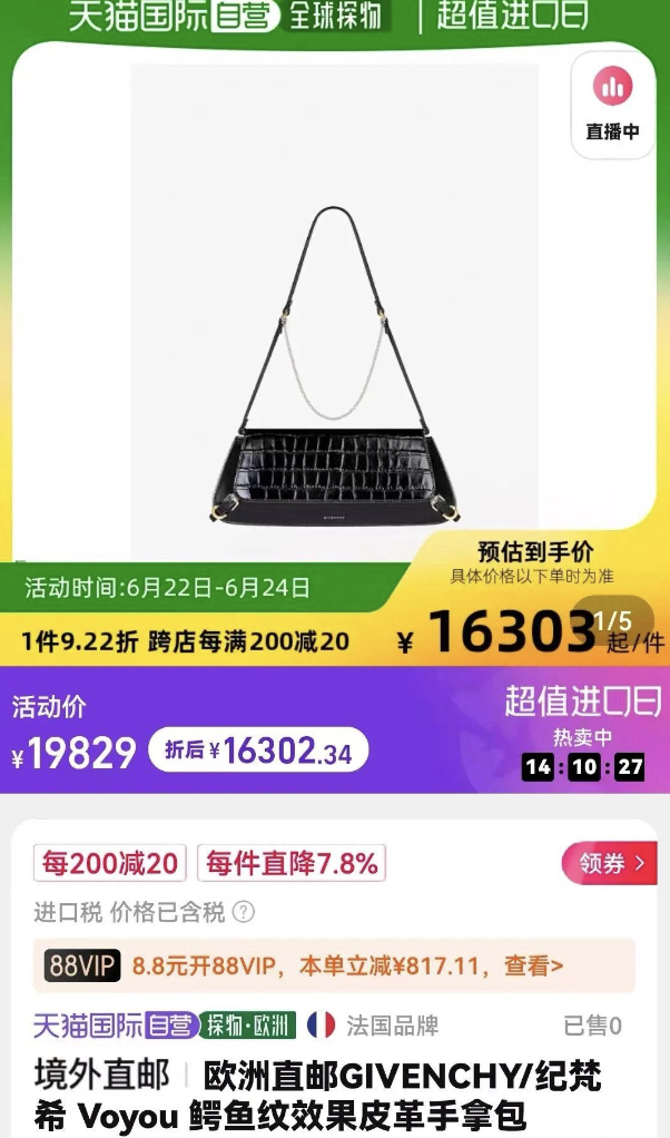 2024年上半年,一众奢牌的打折潮曾引起媒体注意。当时,巴黎世家、范思哲、纪梵希、Burberry,都在天猫等国内主要电商平台开启惊喜大放送,平均打到五至七折,还能分期免息。
