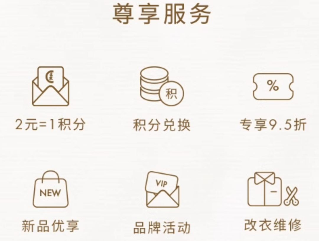 比较初阶的有给会员每人配备一个“SA”“柜姐”。只要消费过,就加个微信,新款上市、穿搭建议、品牌活动等各种信息由专人向您播报。