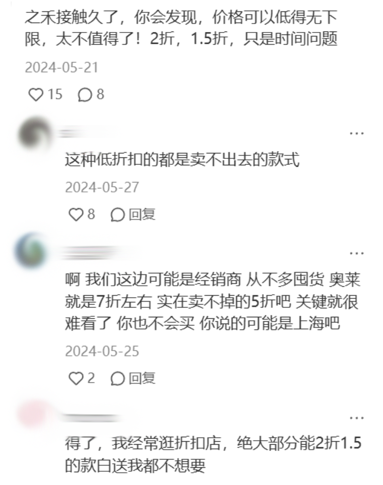 只不过,虽然有更便宜的渠道,“禾粉”却也坚信与品牌之间存在一种默契——折价出售的产品必定是过季的老款、经年的滞销款、质量不行的瑕疵品。